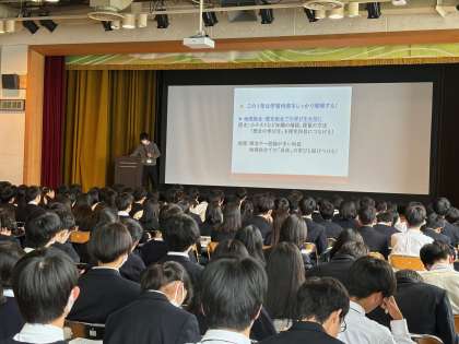 4月11日、25期生を対象に、1年間の展望を持って学びへと向かっていくための学習オリエンテーションが行われました。本オリエンテーションでは、まず最初に学年主任から、「学問は世界をよりよく解釈していくためのチャネルと考えることができる。25期生には、そのような学問の奥深さを探究し続けていってほしい」というメッセージがありました。