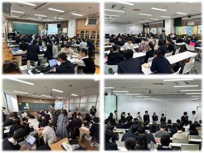 3時間目から5時間目は、本校の授業に参加してもらいながらの交流です。「日本史」「生物」「国語」の各授業では、本校教員及び参加生徒たちが、いつもは違う学び舎で学ぶ仲間を講座に迎え入れ、積極的にコミュニケーションをとりつつ、刺激を与えあう良い時間が展開されていました。