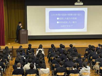 その後、数学・国語・英語の各教科の先生方より、春の課題のみならず、2年生での授業を見据えたアドバイスや激励の言葉がありました。明日の結団式を経て、9日(日)より随時宿泊研修に出発していきますが、帰国後、4月の始業式まで中々長い春休みです。本日のアセンブリーを一つのヒントに、自身の学習状況や学習課題を踏まえ、より良い時間を過ごしてくれることを期待します。