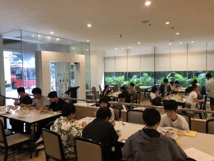 研修も半分が過ぎ、少し慣れが見えてきたことを受けて、昨晩の班長会議で「決められたことをきっちり守る」という当たり前のことを、改めて確認しました。その甲斐もあり、今朝の朝食は定刻に全員がそろっていただくことができました。