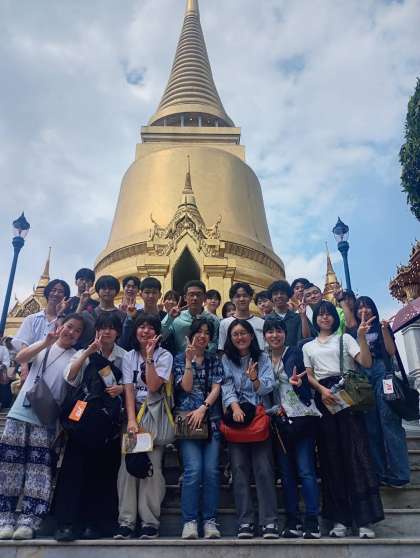 午後の研修である王宮見学。降り注ぐ太陽の光に反射して、寺院の金色が一層鮮やかです。この後も寺院等をめぐったあと、夕食を食べてホテルに戻ります。