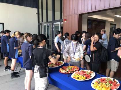 その後、モーニングティーをいただきました。オーストラリアではモーニングティー、もしくはアフタヌーンティーを大切にする文化があり、どの学校でも一日のうちランチタイムが必ず2回あり、片方は軽食(お菓子)とお茶を飲む時間です。バディーと会話を楽しみながらモーニングティーのジュースやお菓子をいただきました。その後それぞれバディのクラスの教室へ行き授業に参加しました。