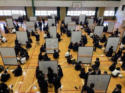 「JUMP」では、1年生で実施した、自分の関心から見つけた課題を研究するという活動に続いて、自分たちで設定したテーマで論文を執筆します。「JUMPはじめの会」は、この「JUMP」の学びに向かうために、春休みで取り組んできた自分の好きなテーマなどについて話しあう、ということを目的に実施されました。