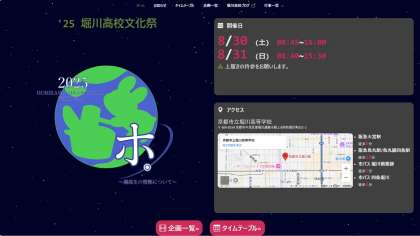 文化祭2日間のプログラム等につきまして、生徒会執行部の生徒と電算機研究部が協力して作成した「特設ページ」のリンク(令和7年度 堀川高校文化祭特設ページ)を紹介します。ぜひ、ご覧ください。