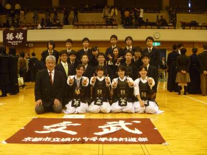 また、10月13日(日)京都市武道センタ−で開催された京都府剣道優勝大会において、男子団体の部で準決勝まで勝ちあがり見事第三位に入賞しました。