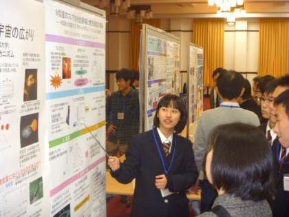 本校2人の研究は「太陽の活動(フレア)」と「銀河系外銀河」に関するもので,参加者からは高校生でもある程度の環境が整えば,工夫や努力でここまでできるのか,という講評をいただきました。研究者からは不十分な点についてご指摘をいただいた他,今後の研究の方向性も示唆していただけました。