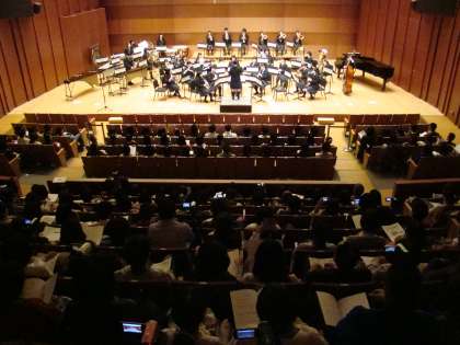 3月27日(日)13:30から、吹奏楽部は第7回定期演奏会を京都堀川音楽高校の音楽ホールにて開催いたしました。会場は立見席がでるほど、入場者でいっぱいになりました。