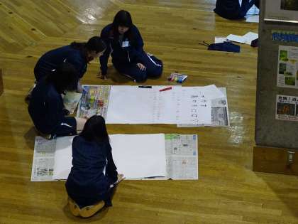 写真下:ポスター作成の様子