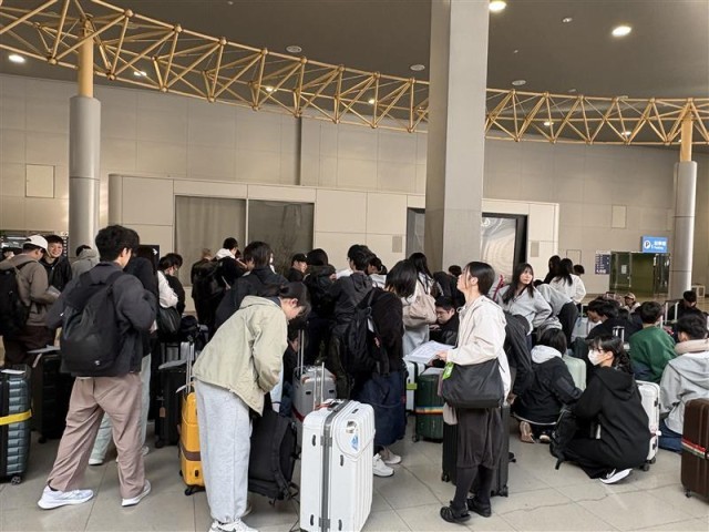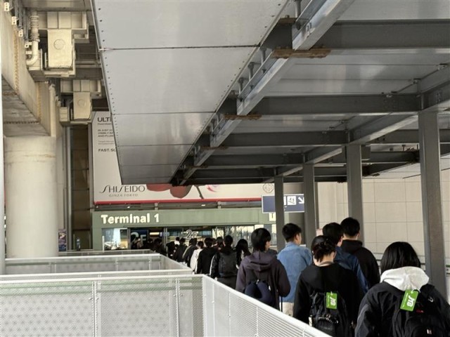 かなりの早朝からの集合となりましたが、皆時間通りに集まりました。大混雑の空港内で搭乗手続きに入っています。