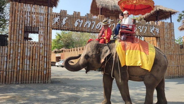 ○写真1 アユタヤでの象乗り体験の様子