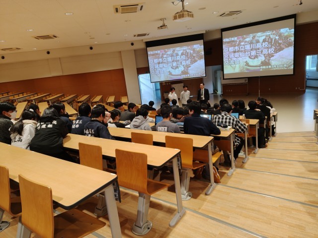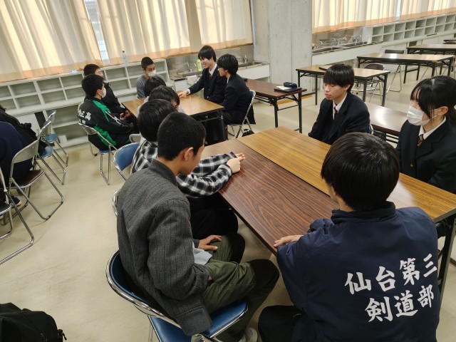 午後は堀川高校と交流のあるSSH校宮城県仙台第三高等学校の訪問し、大変な歓迎を受けました。ここではお互いに探究活動についての意見交流や、またお互いの学校、街の紹介などを行いました。大変温かいおもてなし、ありがとうございました。