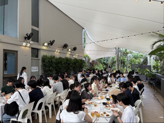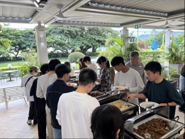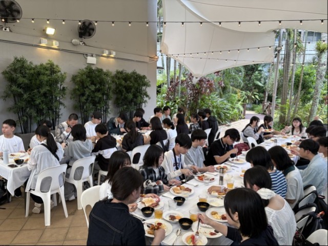 ケアンズ空港に着陸し、全員入国審査を済ませケアンズでの活動をスタートさせました。まずは、全員で朝食を食べています。この後は、全体研修でキュランダ村に行き、午後からはケアンズ市内で班別研修を行う予定です。体調不良者はおりません。朝食をもりもり食べて、この後の活動を頑張ります!