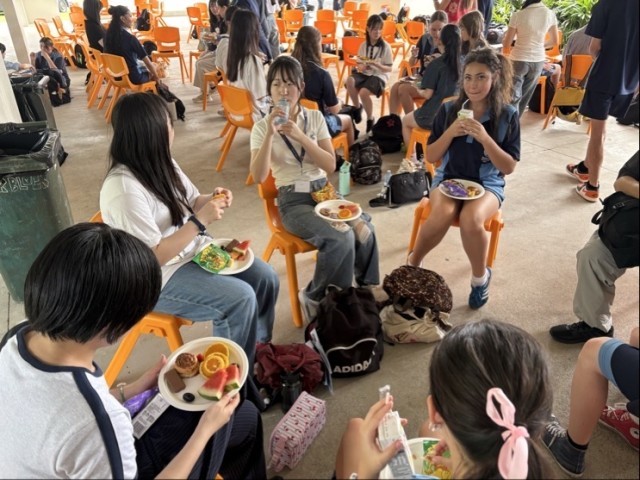 オーストラリアの学校では、モーニングティーとランチタイムというお昼ご飯を食べる時間が2回あることに驚きながらも、バディと共に楽しそうに話しながらオーストラリアの学校文化を体験しました。