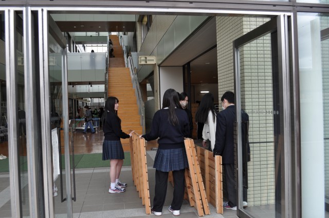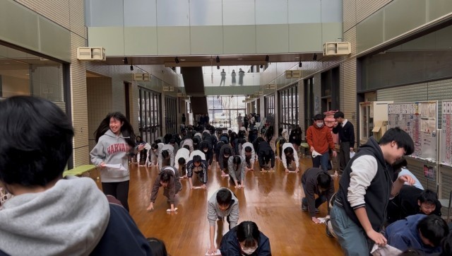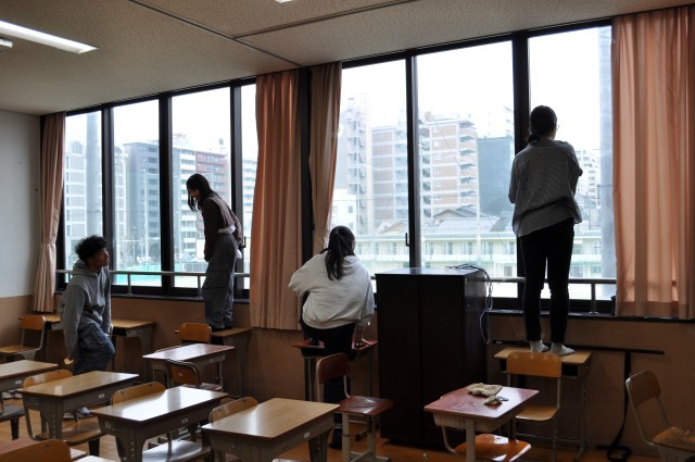 動きやすい服装で集まってくれた卒業生有志は、各階に散らばり、ほうきやちり取り、モップや持ってきてくれたぞうきんを手に、積極的におそうじ。教室の窓枠やアトリウムの高いところにあるほこり、玄関の手すりまで、日ごろの掃除ではなかなか徹底できないところまで、気持ちを込めて丁寧に掃除をしてくれました。最後は全員で、アトリウムの雑巾がけ。大人数の雑巾がけは迫力があり、掃除ってすばらしいと思わせてくれる瞬間でした。みなさんの協力によって、校舎は美しくなりました!生徒の皆さん、PTAの皆様、ほんとうにありがとうございました!