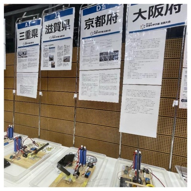 筆記競技は6人1チーム、実技競技は3~4人1チームで、課題を分担、相談するなど協力して成果を競い合います。今回参加の8名は、中心となる生徒が友人に声をかけ、自主的に参加を決め、697校7,892人のエントリーから全国大会出場を決めました。ものづくりの能力、コミュニケーション能力などを用いて課題解決能力を競う実技競技に向けては、コイルを利用した発射装置が課題となっていて、放課後遅くに、「あれ~何でかな」「○○先生が、コイルもっときれいに巻かなあかんって言ってたな」などと話しながら、アトリウムなどで顔を寄せ合って装置をいじっていた様子が思い出されます。