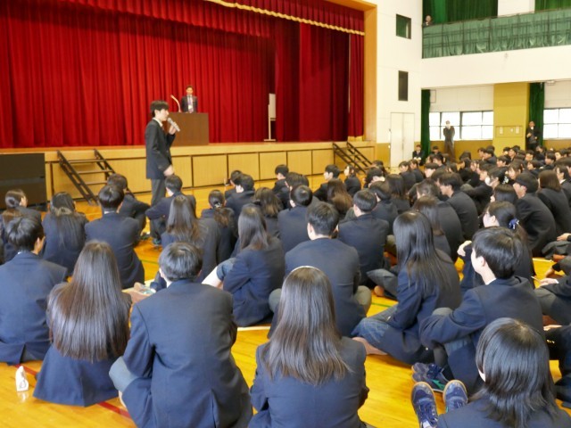 続いて、校長先生からのお話では、社会には課題が山積していますが、より便利な世の中となった事、そんな世の中だからこそ、問題を一つ一つ解決していくためには、解決すべき課題を見つけることが大切だと述べれられました。