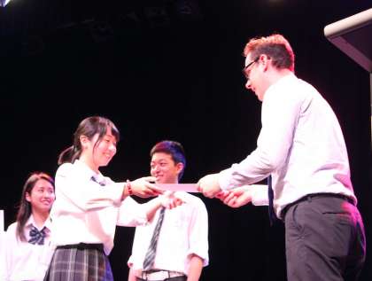 Party後半のMC(司会・進行)は本校生徒が英語で行いました。