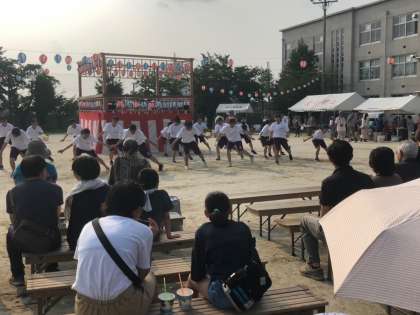 7月28日(日),元今熊野小学校で開催された今熊野夏祭りに本校のダンス部が参加,出演しました。非常に暑い日でしたが,会場には小さなお子さんからお年寄りまでたくさんの方がお見えになり夏祭りを楽しんでられました。本校生徒のダンス部ははつらつとしたダンスを披露,大きな拍手をいただきました。このような機会を与えていただき、ありがとうございました。