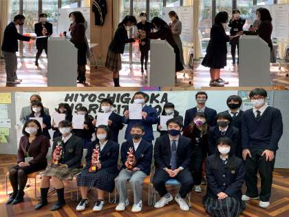 さて,ジャッジ泣かせのハイレベルな大会で優勝を飾ったのは京都御池中学の定本さん,2位は西京付属中学の倉谷さん,3位は和束中学の渡邊さんでした。今回のレシテーションコンテストに参加してくれた生徒の皆さん,そして保護者の方々,本当にお疲れさまでした。日吉ヶ丘高校英語村でまたお会いできることを楽しみにしております。