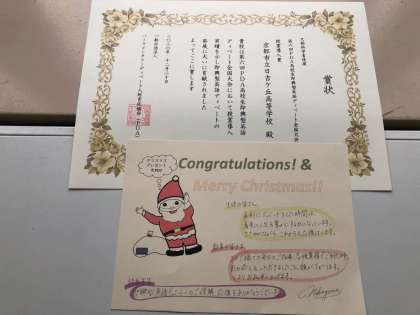 また日吉ケ丘高校は今回「文部科学省後援 第六回PDA高校生即興型英語ディベート全国大会 授業導入賞」を頂きました。