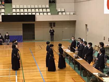 1月11日(月祝)に横大路運動公園体育館で開催された,京都府高等学校剣道強化錬成会において本校女子剣道部が優勝し,全国選抜大会への出場権を得ることができました。