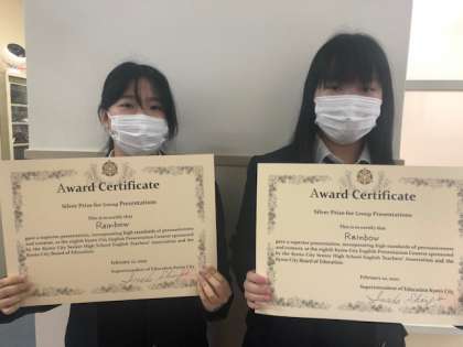 本コンテストでは,京都市立高校に所属する高校生有志が英語を用いて身の回りや世界の課題についてプレゼンテーションを行います。本年度はコロナウィルス感染症対策のため,本校でプレゼンテーションを行い,それを録画したものが審査対象となりました。