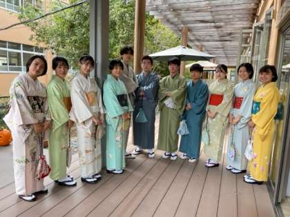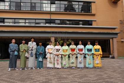 着物を着るのは初めての生徒が多く戸惑いましたが,講師の方の丁寧な指導のおかげで,全員がきれいに着ることができました。