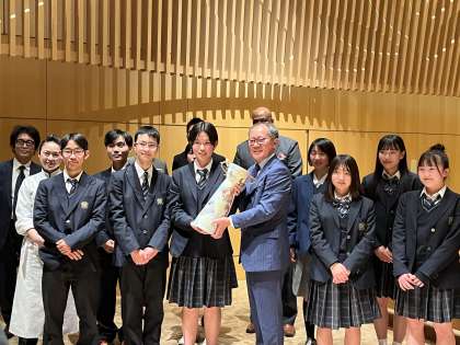 日吉ヶ丘高校スピーチコンテストの受賞者8名がカップを競って素晴らしいパフォーマンスを披露、日吉ヶ丘レシテーションコンテスト(中学生対象)の優勝者もゲストパフォーマーに迎えて最終発表を待ちながら、緊張を解していました。