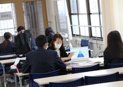 まず初めに、進路指導主事からの全体的な話を行い、その後に大学受験、専門学校受験、就職準備といった進路別の他、医療・看護系といった分野に絞った説明会がありました。