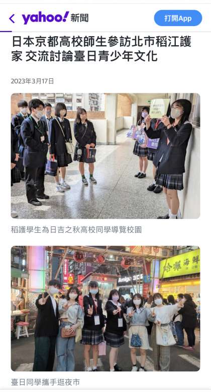 また、稲江護家高校との交流の様子が台湾のインターネットニュースに掲載されました!