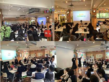 On Jun.23rd, the last day of HELLO Village Week, we had the lunchtime event ‘Hiyoshi Idol Talent Show’. So many students and teachers came to this event and held their breaths or cheered for the students who were a bit nervous but showed their talents and made amazing performances. On the show, we had 7 student performances: dance, playing the piano, Rubik's Cube, singing a cappella, with instrumental accompaniment, or with a guitar. Each performance received generous applause from the audience!