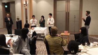 夕食時は「English fun night」という各テーブルに1人ずつ外国人の方がつき、英語での交流を行うイベントが行われました。生徒たちは積極的に英語でコミニケーションをとり、良い越境体験ができました。更にホテルからのご好意で3月が誕生日の生徒にケーキのサプライズがありました。