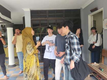 まずは入村式の後、地域の主要な産業の一つである天然ゴムの採集の様子や、ココナッツの採集の様子を見せていただきました。パーム油もどのように収穫されるのかを見た後、今回は9〜14人程度を1班として、1家庭に受け入れていただき、家族のように接していただきました。朝から疲れた表情を見せていた生徒たちも、終わることにはとても名残惜しそうな様子に。