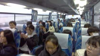 飛行機は予定通りマレーシアを出発し、日本に20分程度遅れて着陸しましたが、その後の入国手続等はみんなが迅速に動いたおかげで遅れを多少取り戻し、7:10にはバスは出発しました。さすがに、安心と疲れでバスの中では静かに、ゆっくりしています。
