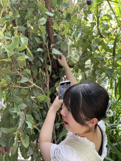 語学学校の先生も引率してくださいました。行きのバスでは曇り空で時々雨も降っていましたが、到着すると雲の隙間から日差しも差し込み、あとでは日焼け止めを塗るぐらいの晴天となりました。生徒たちはオーストラリアの動物と触れ合うことに心をワクワクさせていました。ワニを見たあと、カンガルーへの餌やりを通じて広場でワイワイ言いながらカンガルーと触れ合ったり写真を撮ったりして楽しみました。待望のコアラと対面した時には「わぁ〜かわいい!!」という歓声が湧き起こりました。コアラに触れることもでき、みんな満足気でした。昼食はフードコートで各自ホストファミリーから作ってもらったランチやコート内にある売店でハンバーガーや飲み物などを買って、自由に集まって食べていました。