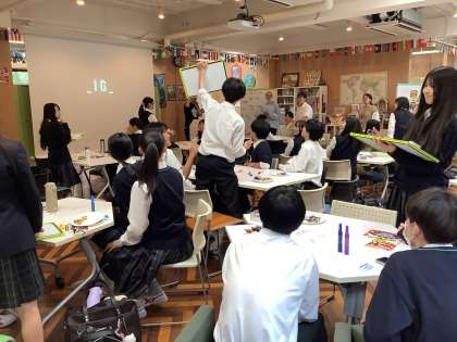 Sheeranのビデオクリップからの出題でした。これはとても難しく、正解が出せたグループは大喜びでした。Quizに正解が出せるとポイントが付き、皆、英語で頑張っていることを忘れるほど集中していました。参加した生徒達は大いに楽しみながら生きた英語に触れ、新たな知識も得ることができたと喜んでいました。