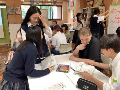 Village Week I の一週間、日吉ケ丘生は毎日、他国の生徒達と交流する機会を得ました。前半は姉妹校のルーマニアのジョージ・コシュブック校の生徒達を迎え共に活動し、後半はアメリカのCIEE留学生を交えての開催となりました。