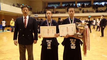 決勝戦において、日吉ケ丘高校の2年河原林君と2年鷲田君の対戦になりました。白熱した一進一退の試合で、どちらが勝っても不思議ではない状況でしたが、鷲田君が一本を決めて見事優勝しました。また、2年森川君と1年久能君も準々決勝まで勝ち上がりベスト8の成績をおさめました。4名は、平成28年度国体候補選手になりました。