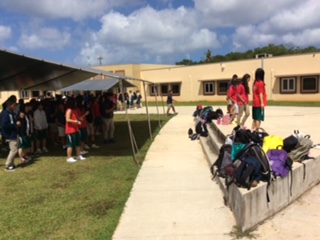 続いて、オコド高校からの出し物はロックバンドの演奏で始まりました。こちらには本校の教員2人が飛び入りで歌を熱唱し、生徒たちは大喜び。そしてグループに分かれてオコド高校の生徒たちと踊ったりゲームをしたりと、アクティビティ満載の交流会でした。