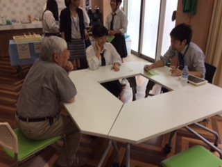 そして会議終了した後に、昼休みの英語村の様子を見ていただきました。生徒たちがお弁当を持って英語村に集まり、ALTたちと一緒に食事をしながら英語での会話を楽しんでいる姿を見て、「ほんとうに『楽しみながら学ぶ』が実践されていますね」等の言葉をいただきました。