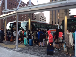 1年次生アクセラレイティッドコース・リベラルアーツコースの生徒が、グアムへ向けて出発しました。A団(5組・6組・7組)は関西空港から、B団(3組・4組)は中部国際空港からの飛行機となります。早朝の集合でしたが、全員元気に出発しました。8時頃には、両団とも途中のサービスエリアで休憩中であることと、順調であることの連絡が入っています。旅の無事とグアムでの充実した修学旅行になることを願っています。