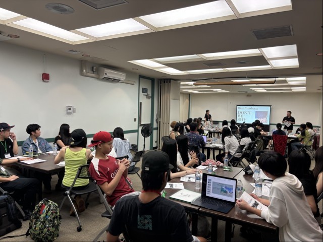 ハワイに到着後、早速ハワイ大学へ向かい、「プロジェクトパラダイス」と呼ばれるプログラムが実施されました。このプログラムでは、各グループに多様性あふれる現地大学生がリーダーとして加わり、自己紹介と交流、ハワイ文化と日本文化を比較するアクティビティー、カフートを使った班対抗クイズ大会などを行いました。その後、大学生とランチやミッションを楽しみました。生徒たちは皆、長時間フライトによる疲れはどこへやら、活発に大学生とのコミュニケーションを楽しんでいました。