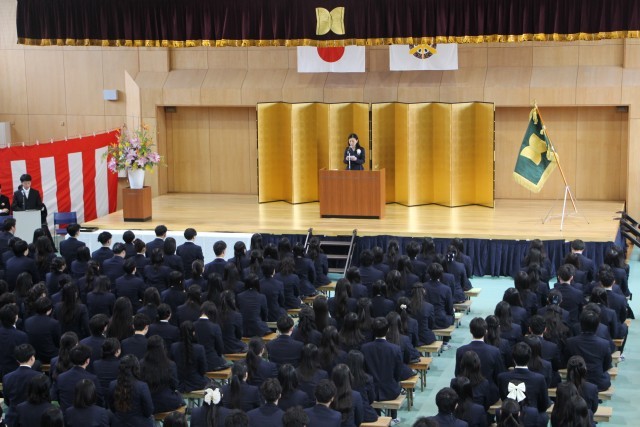 卒業証書を受け取る卒業生の姿はとても誇らしげで、卒業生代表の答辞には日吉ケ丘での3年間の全てへの感謝と、未来へ羽ばたこうという力強い思いが込められていました。式歌『3月9日』の斉唱では卒業生のピアノ伴奏の優しい音色に歌声が乗り、温かい斉唱となりました。花道では盛大な拍手とともに見送られて、教職員や保護者の表情からも卒業生への深い愛情が感じられる、感動的な式となりました。