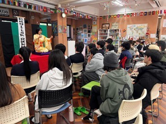 On March 17, as part of the 10th anniversary events of Hello Village, we held an English Rakugo viewing and workshop at the Communication Space, welcoming English Rakugo performer OKEICHAN.