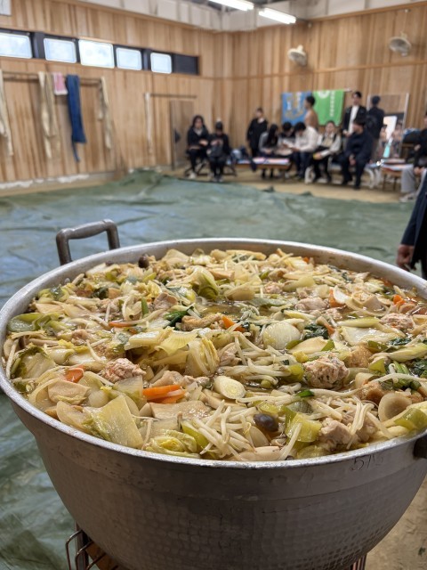 稽古の後には、相撲部マネージャー手作りのちゃんこ鍋が振る舞われ、留学生と部員が交流しながら食事を楽しむ様子が見られました。鍋いっぱいに用意されたちゃんこも最終的にはすべてなくなり、相撲を通して国際交流を深める、部員にとっても大変貴重な機会となりました。