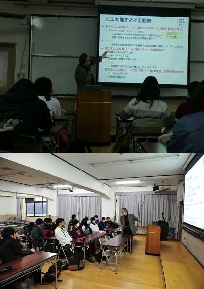 1月17日(水)、2年生アカデミア科サイエンスコースの総合的な学習の時間「サイエンスセミナーII」で、京都府立大学の田伏正佳先生による特別講義「人工知能 第3次AIブーム」を行いました。