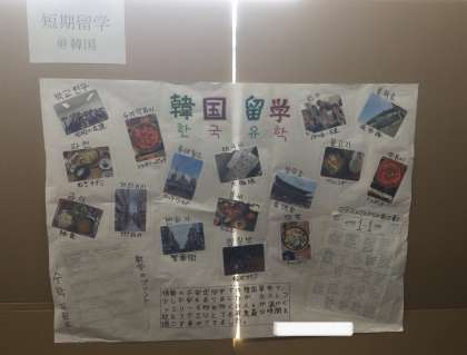昨年度3月のアカデミア科オーストラリア研修や今夏のグローバルリーダーの活動報告の他、約1年間の留学から帰国した生徒や夏に韓国へ短期留学した生徒が、生活の様子を紹介したりしました。また、姉妹校のシュバリエカレッジへの短期留学の展示もありました。今年度は、12月に本校がシュバリエカレッジ(オーストラリア)からの留学生をお迎えする年になります。本校に20名のシュバリエ校生が2週間登校し、授業交流だけでなく、部活動や放課後の行事にも参加します。