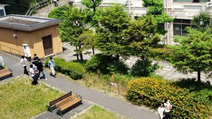 学習効果を狙って,多くの授業で少人数講座が展開されています。そのため,いつもHR教室で授業を受けるわけではなく,休み時間は多くの生徒が校内を移動します。