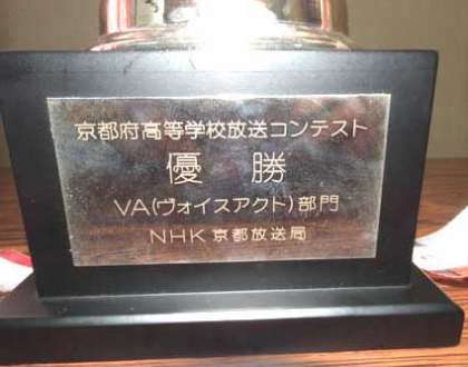 紫野高校放送局が京都府高等学校放送コンテストのヴォイスアクト部門で優勝した時のカップです。おめでとうございます。