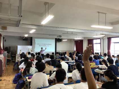 講座では、様々な英語の勉強方法やコツや勉強そのものへの向き合い方などをお話ししてくださり、生徒は真剣な表情で耳を傾けていました。また、英語の効果的な勉強法を実践するアクティビティなどの時間もあり、生徒は一生懸命取り組んでいました。